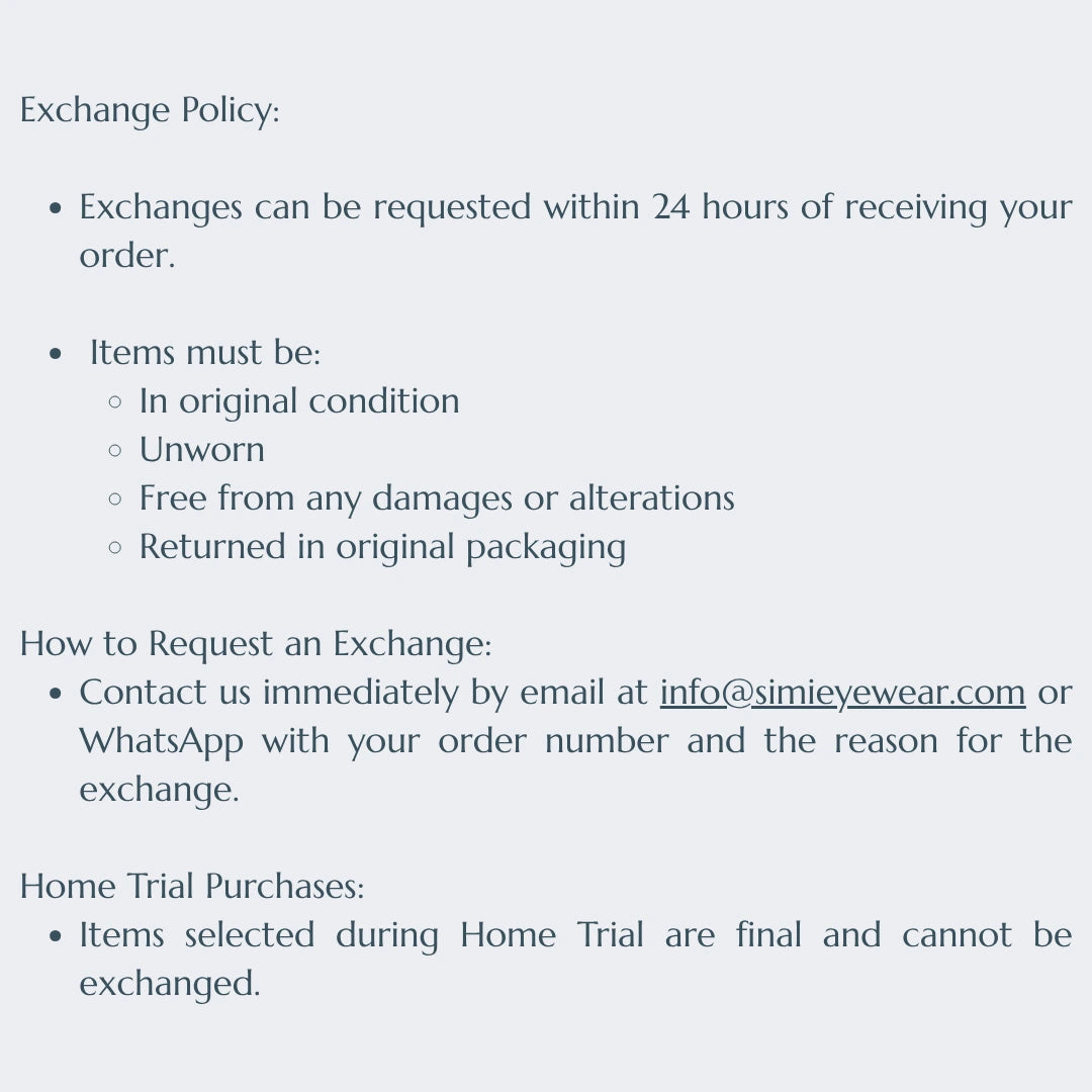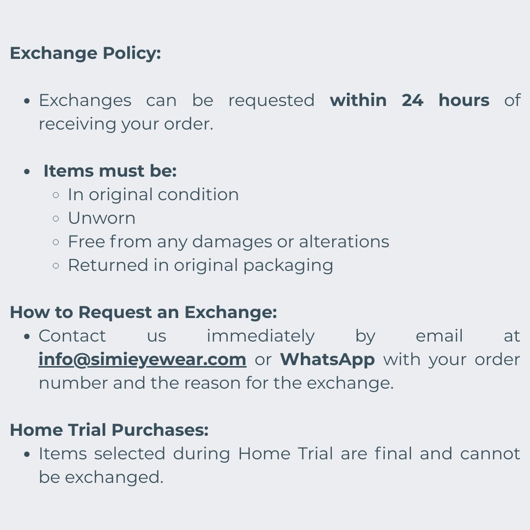 At Simi Eyewear, we want to make your shopping experience seamless and enjoyable.